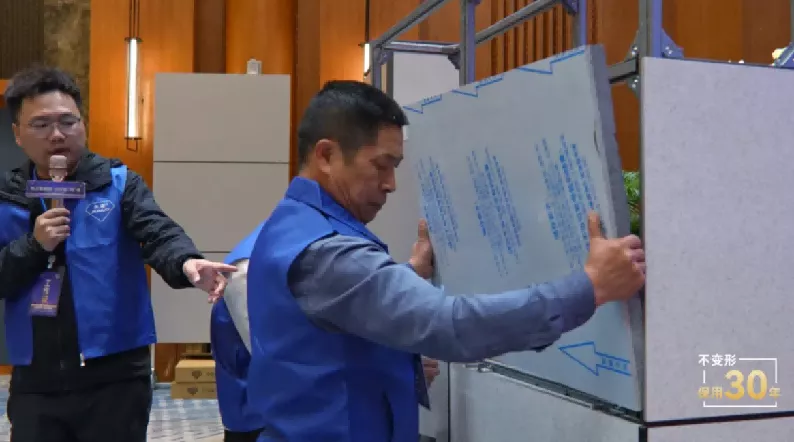 积木式装配:会场实地演示了“所见即所得”的装配过程。从构件对位到立面成型,施工高效、规范、标准,极大地降低了对人工技术的依赖。