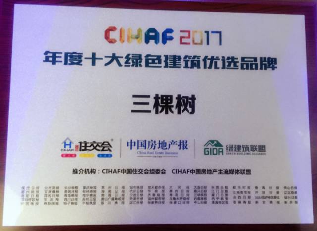 每一次的荣誉都是一次鞭策,三棵树将秉承“树立天地,绿满世界”的企业愿景,深耕绿色经济,与开发商携手同行,与行业齐肩并肩,与社会共享发展,共圆生态大业、美丽中国梦!