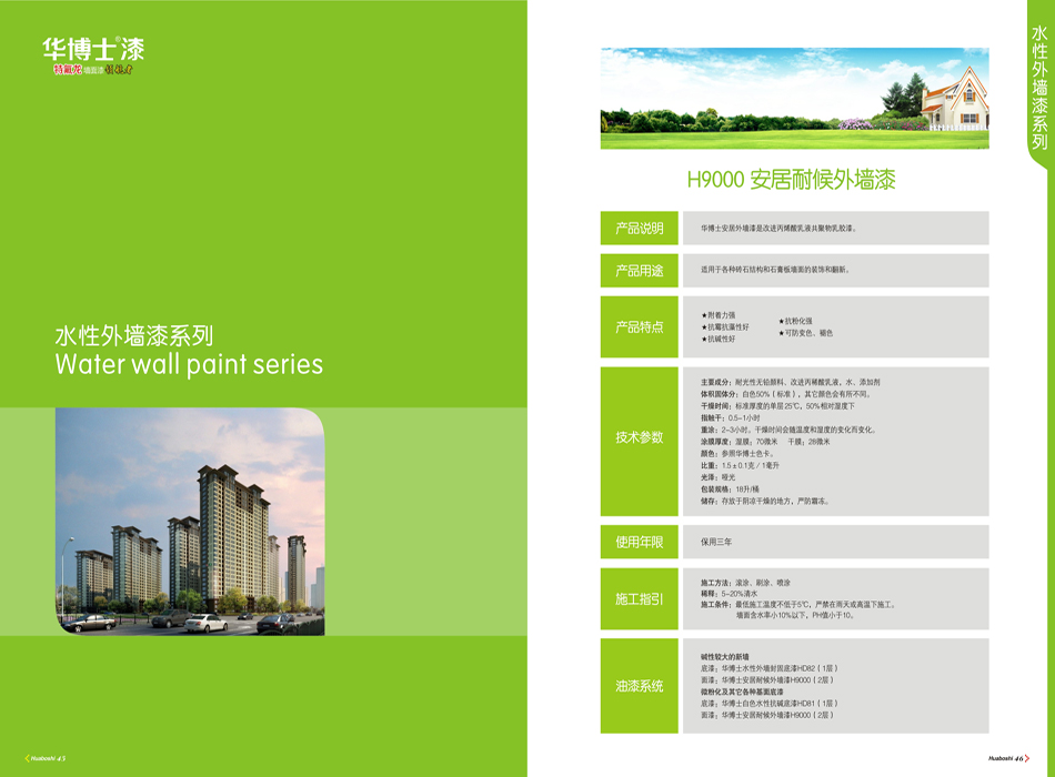 『华博士』色彩家园优质外墙漆,采用优质聚合物乳液精制而成,可调缤纷色彩,色泽柔和,漆膜平滑,且遮盖力强,流平性好,施工简单方便,在营造多姿多彩家居生活的同时,更能保持墙面效果持久亮丽。